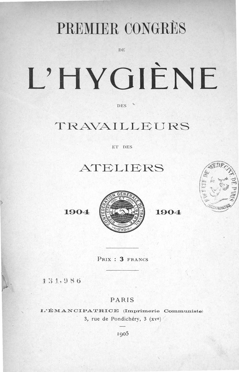 Congrès de l'hygiène des travailleurs et des ateliers (1 ; 1904 ; Paris).
