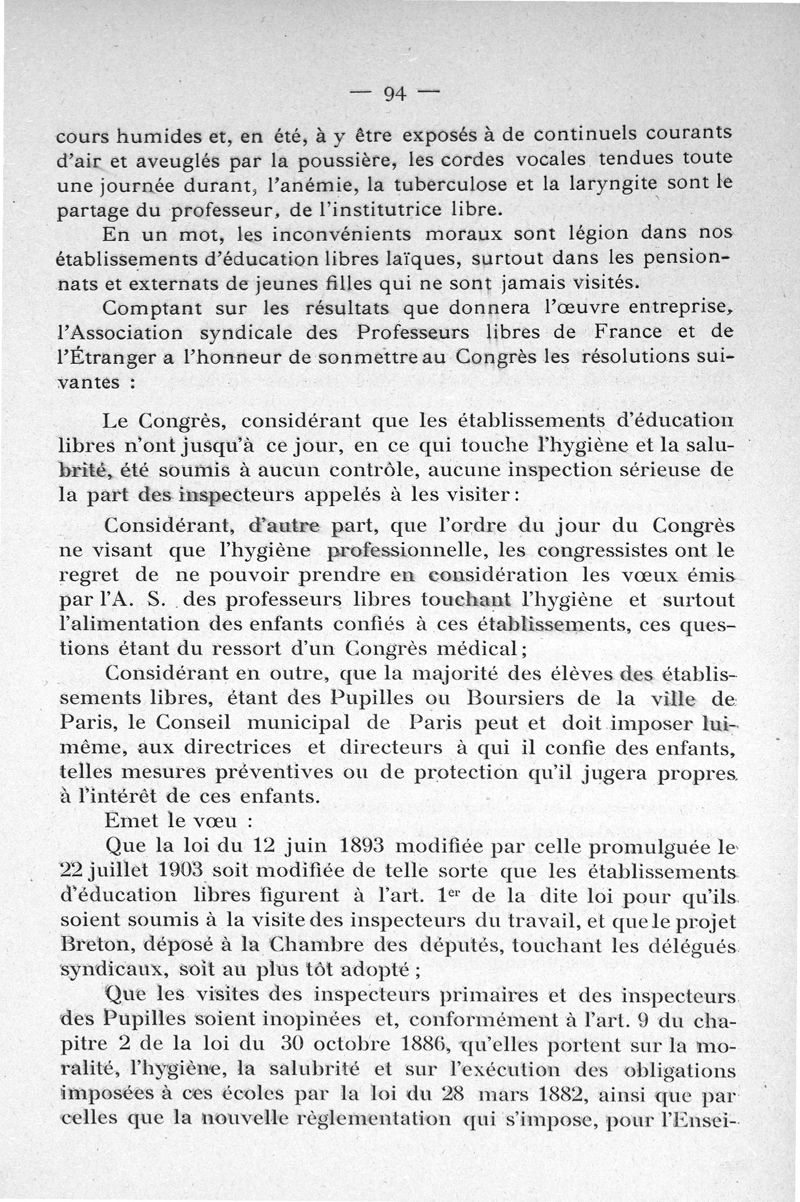 Congrès de l'hygiène des travailleurs et des ateliers (1 ; 1904 ; Paris).