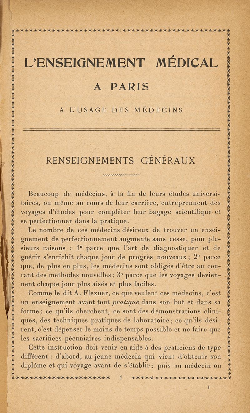 L'enseignement médical à Paris : Renseignements pratiques á l'usage des médecins 1913-1914