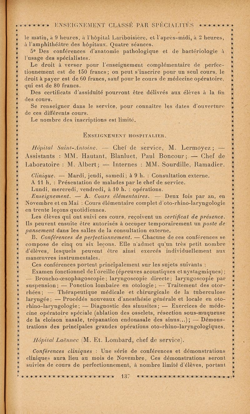 L'enseignement médical à Paris : Renseignements pratiques á l'usage des médecins 1913-1914