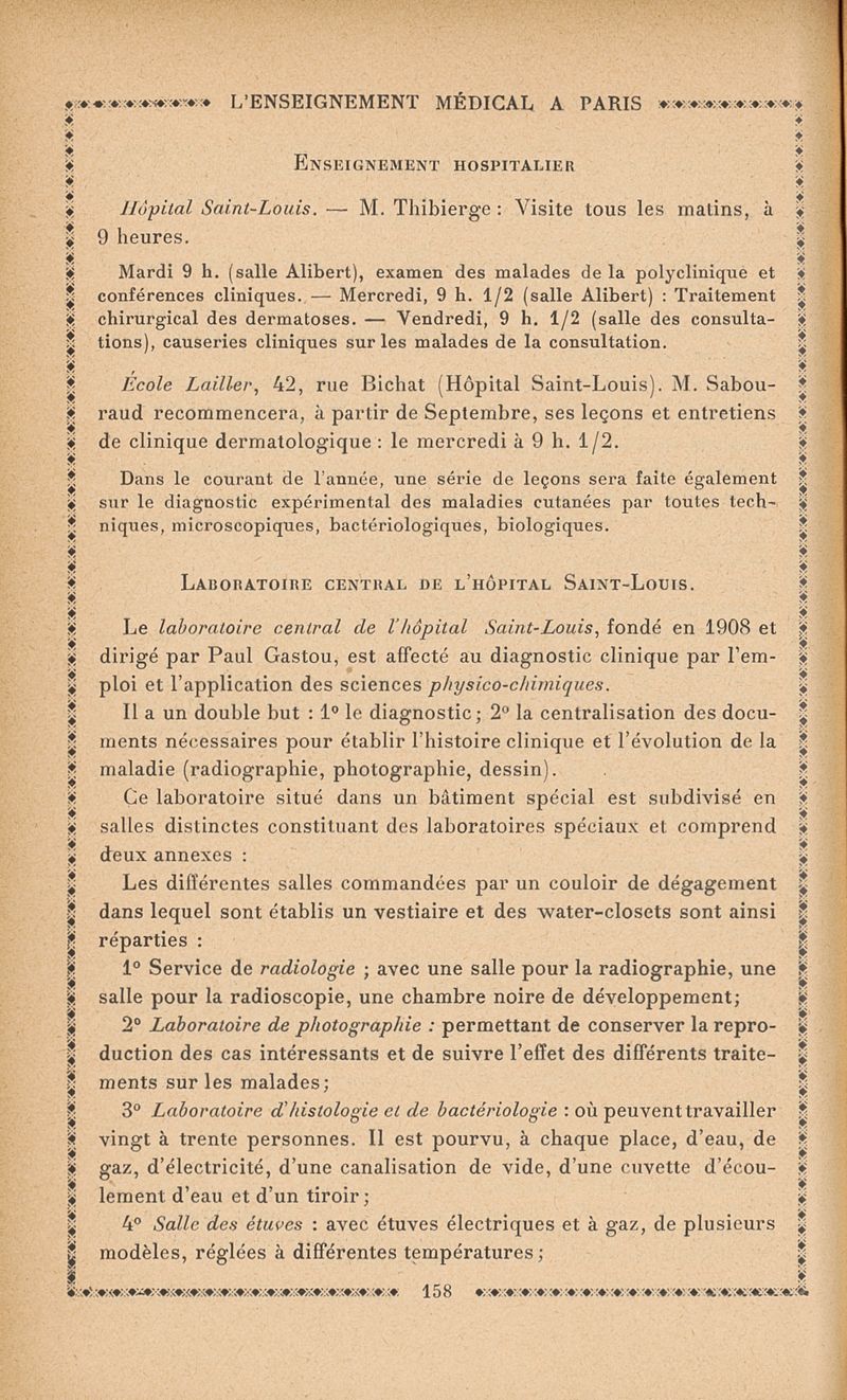 L'enseignement médical à Paris : Renseignements pratiques á l'usage des médecins 1913-1914