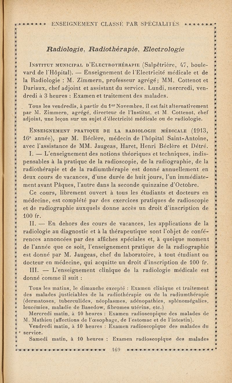 L'enseignement médical à Paris : Renseignements pratiques á l'usage des médecins 1913-1914