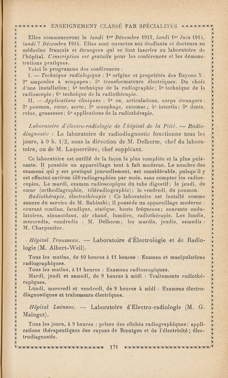L'enseignement médical à Paris : Renseignements pratiques á l'usage des médecins 1913-1914
