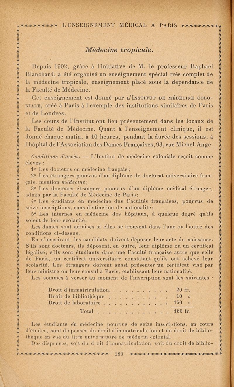L'enseignement médical à Paris : Renseignements pratiques á l'usage des médecins 1913-1914