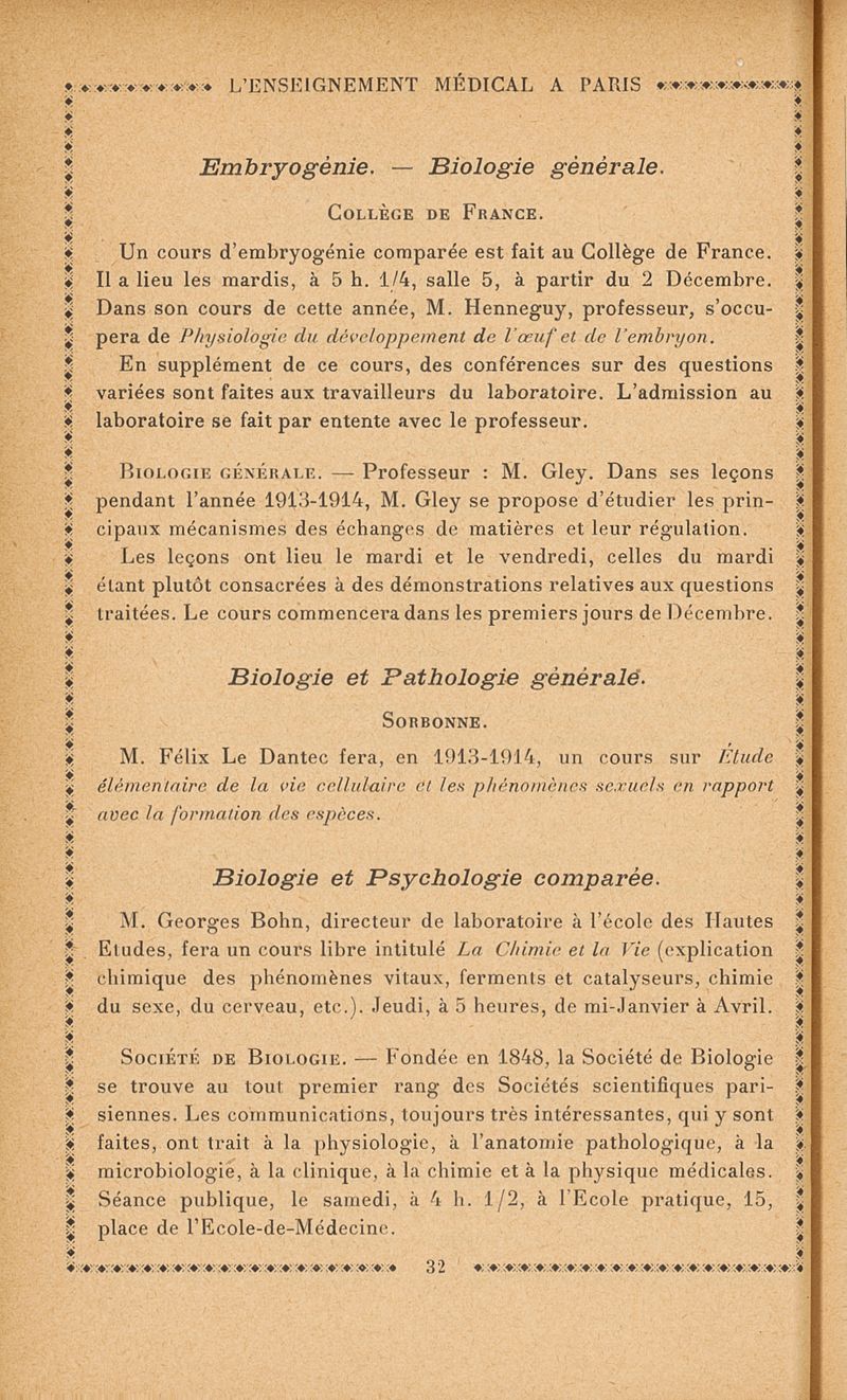 L'enseignement médical à Paris : Renseignements pratiques á l'usage des médecins 1913-1914