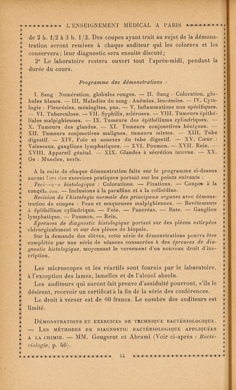 L'enseignement médical à Paris : Renseignements pratiques á l'usage des médecins 1913-1914