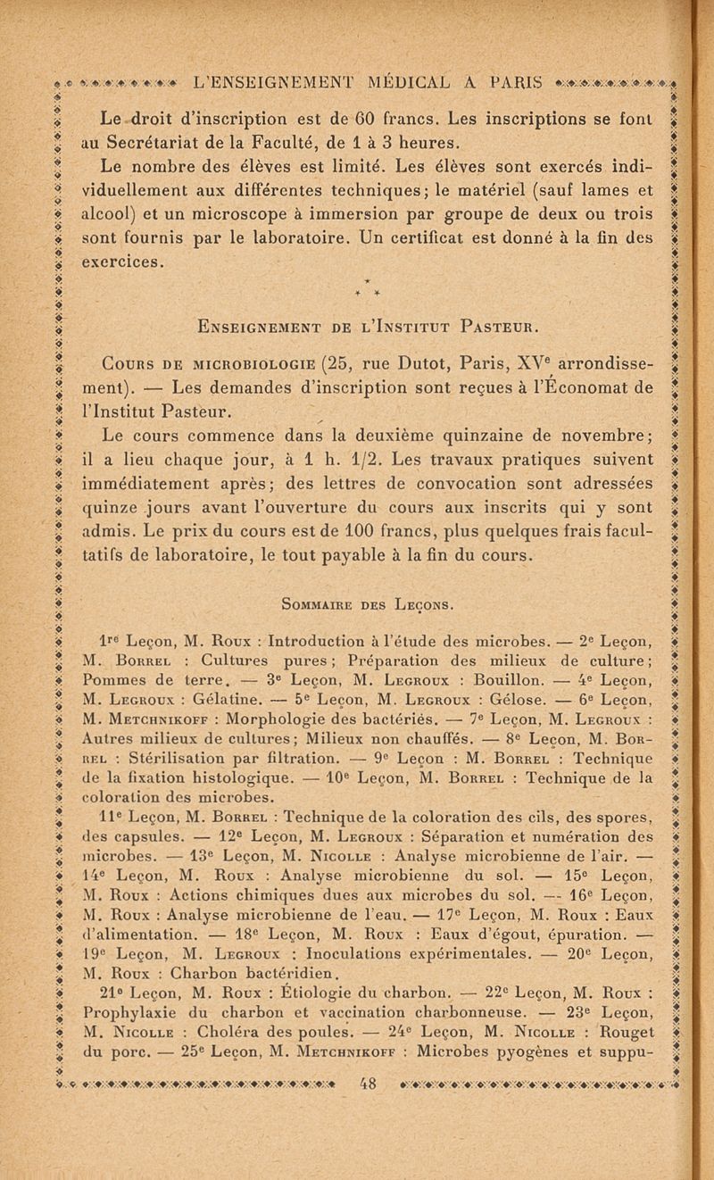 L'enseignement médical à Paris : Renseignements pratiques á l'usage des médecins 1913-1914