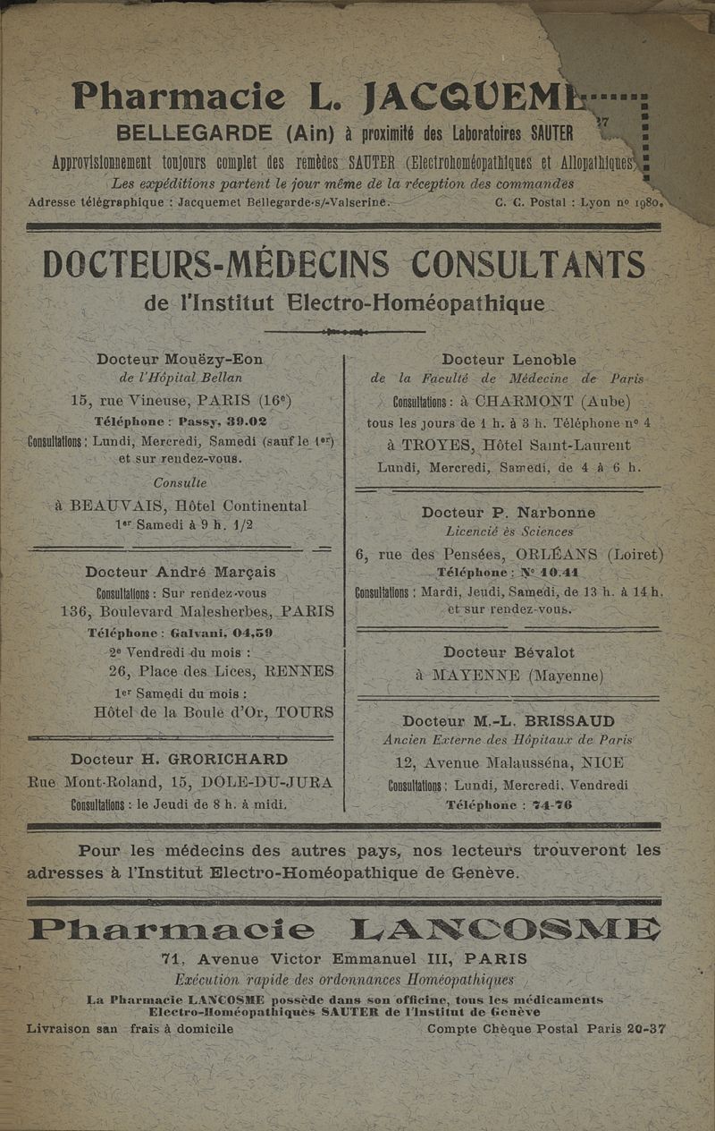 31e à 41e années de l'édition française. - Genève : Institut électro-homéopathique, 1921-1931.