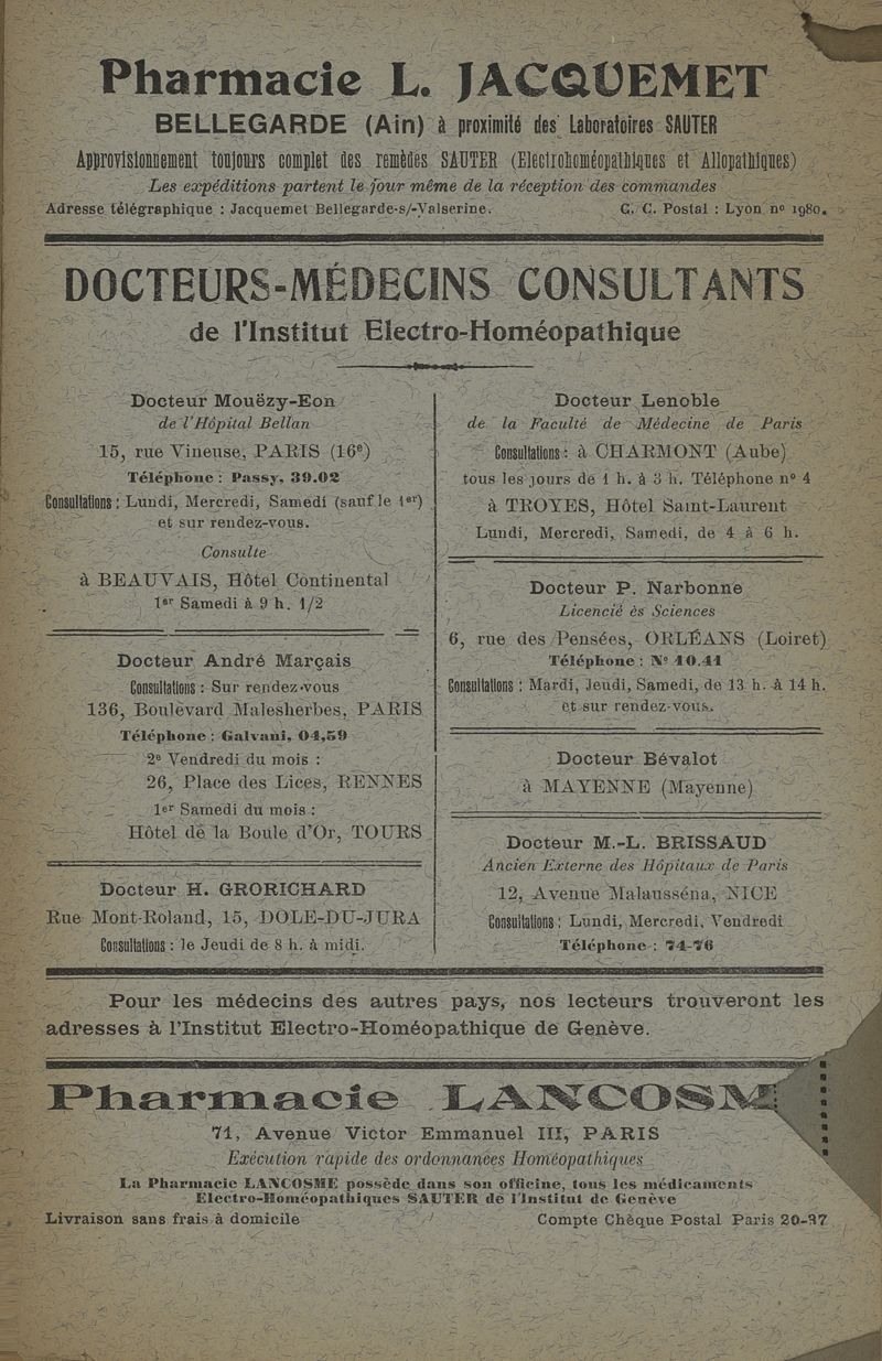 31e à 41e années de l'édition française. - Genève : Institut électro-homéopathique, 1921-1931.