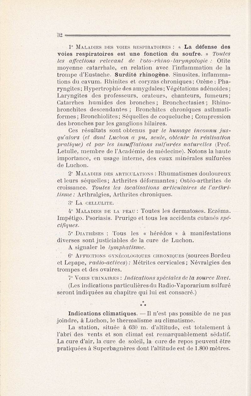 Luchon dans l'histoire de l'hydrologie : réflexions et hypothèses sur l'action des eaux minérales ; suivies d'une Étude sur le radio-vaporarium sulfuré de Luchon : technique, clinique, résultats