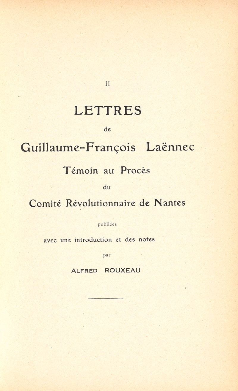 Un étudiant en médecine quimpérois (Guillaume-François Laennec) aux derniers jours de l'Ancien Régime (Quimper-Paris-Montpellier-Londres), 1768-1774 Suivi de lettres d'un témoin au Procès du Comité révolutionnaire de nantes avec une introduction et des notes
