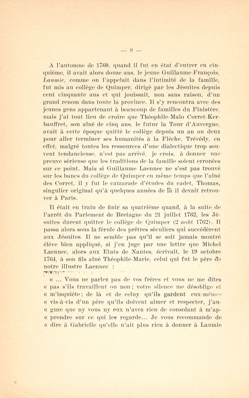 Un étudiant en médecine quimpérois (Guillaume-François Laennec) aux derniers jours de l'Ancien Régime (Quimper-Paris-Montpellier-Londres), 1768-1774 Suivi de lettres d'un témoin au Procès du Comité révolutionnaire de nantes avec une introduction et des notes
