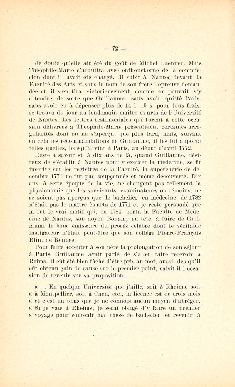 Un étudiant en médecine quimpérois (Guillaume-François Laennec) aux derniers jours de l'Ancien Régime (Quimper-Paris-Montpellier-Londres), 1768-1774 Suivi de lettres d'un témoin au Procès du Comité révolutionnaire de nantes avec une introduction et des notes