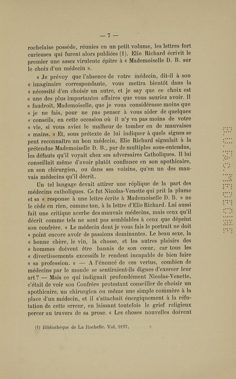 Quelques documents sur le querelle religieuse et la fondation du collège royal de médecine à La Rochelle à la fin du XVIIe siècle