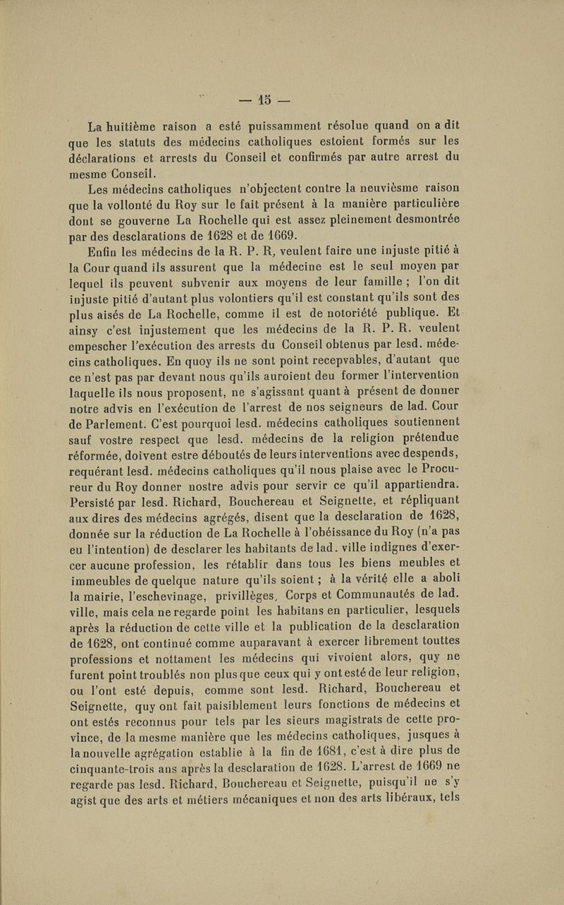 Quelques documents sur le querelle religieuse et la fondation du collège royal de médecine à La Rochelle à la fin du XVIIe siècle