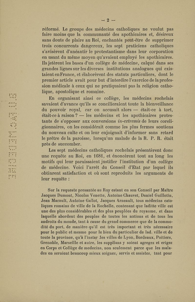 Quelques documents sur le querelle religieuse et la fondation du collège royal de médecine à La Rochelle à la fin du XVIIe siècle