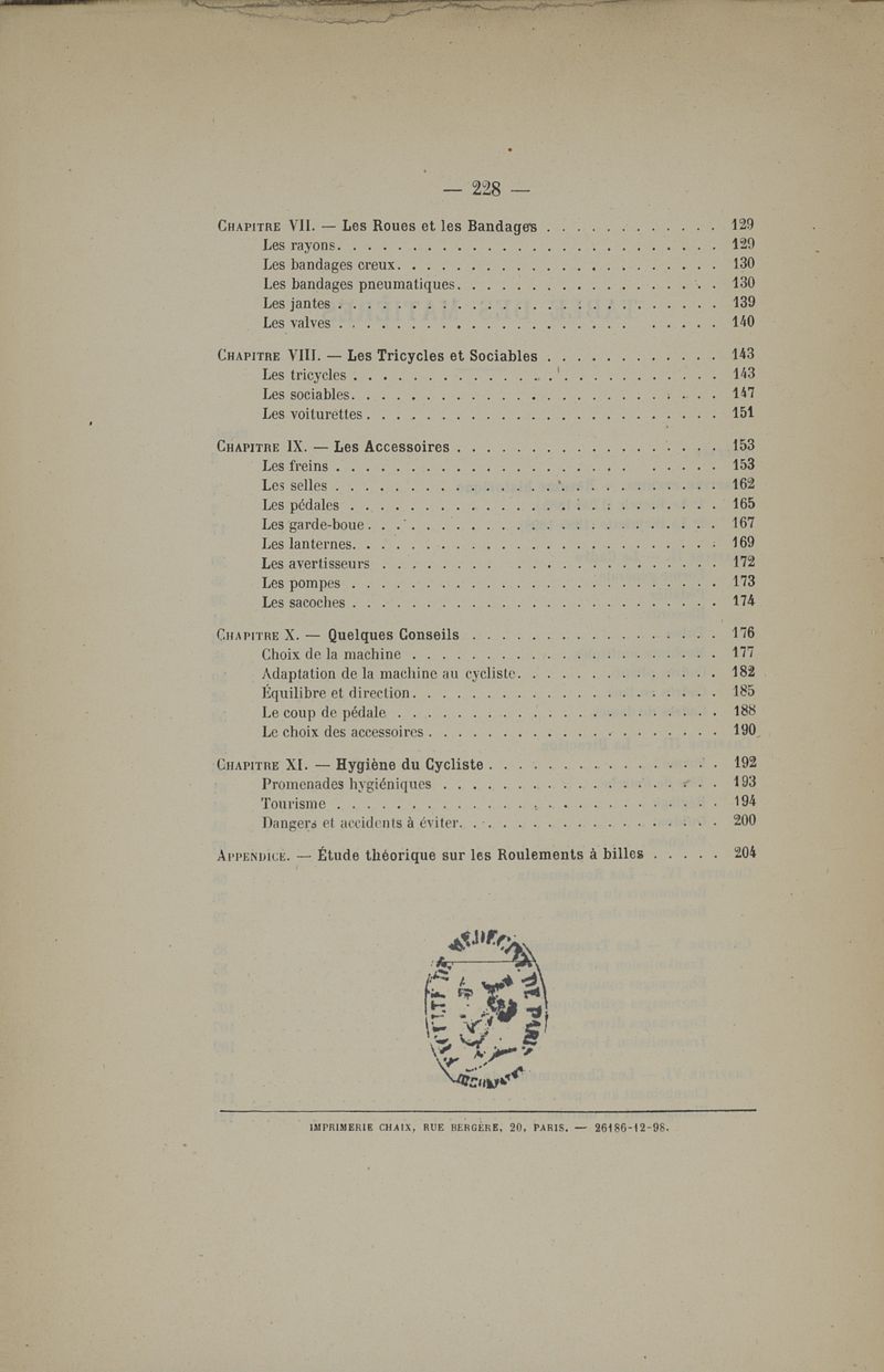 La bicyclette. Sa construction et sa forme