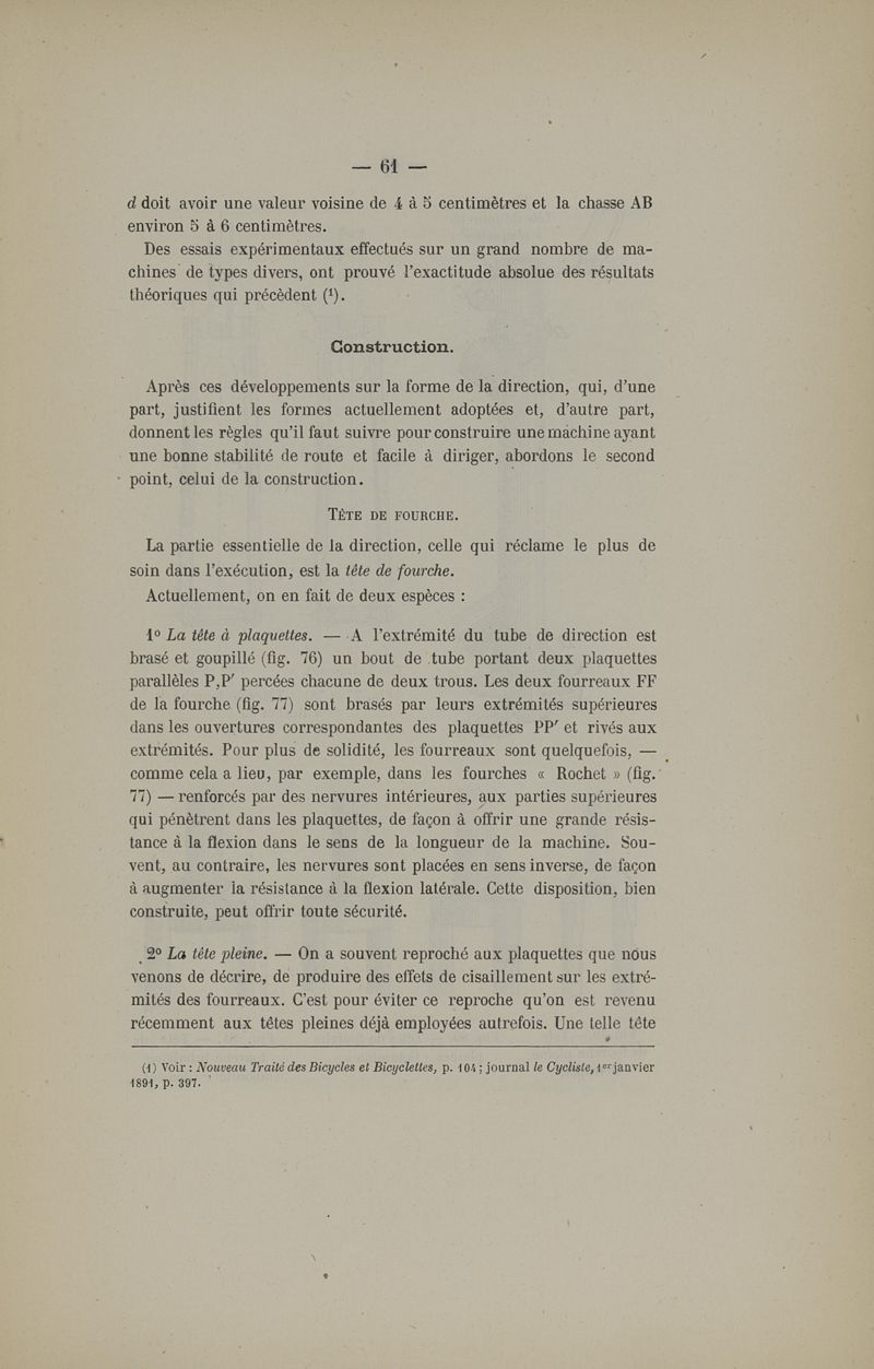La bicyclette. Sa construction et sa forme