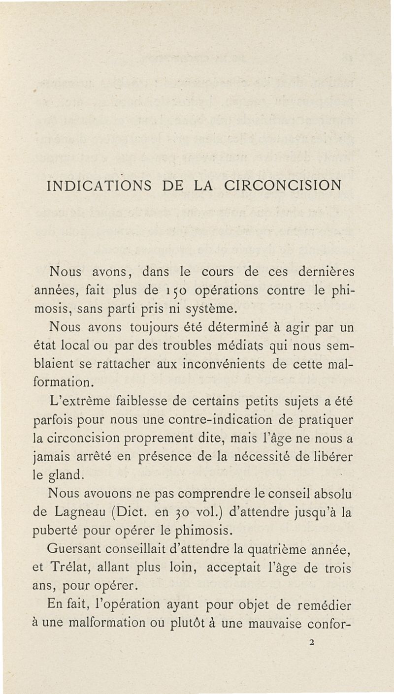 De la circoncision, indications et manuel opératoire