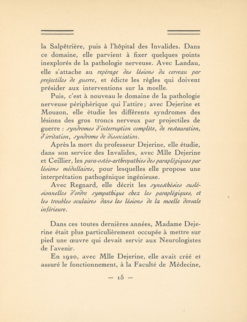 Éloge de Madame Déjerine-Klumpke (1859-1927). Discours prononcé à la séance du 1er décembre 1927 de la Société de neurologie de Paris