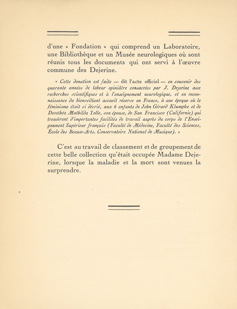 Éloge de Madame Déjerine-Klumpke (1859-1927). Discours prononcé à la séance du 1er décembre 1927 de la Société de neurologie de Paris