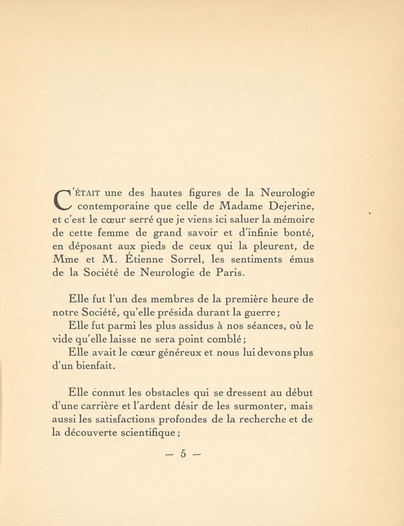Éloge de Madame Déjerine-Klumpke (1859-1927). Discours prononcé à la séance du 1er décembre 1927 de la Société de neurologie de Paris