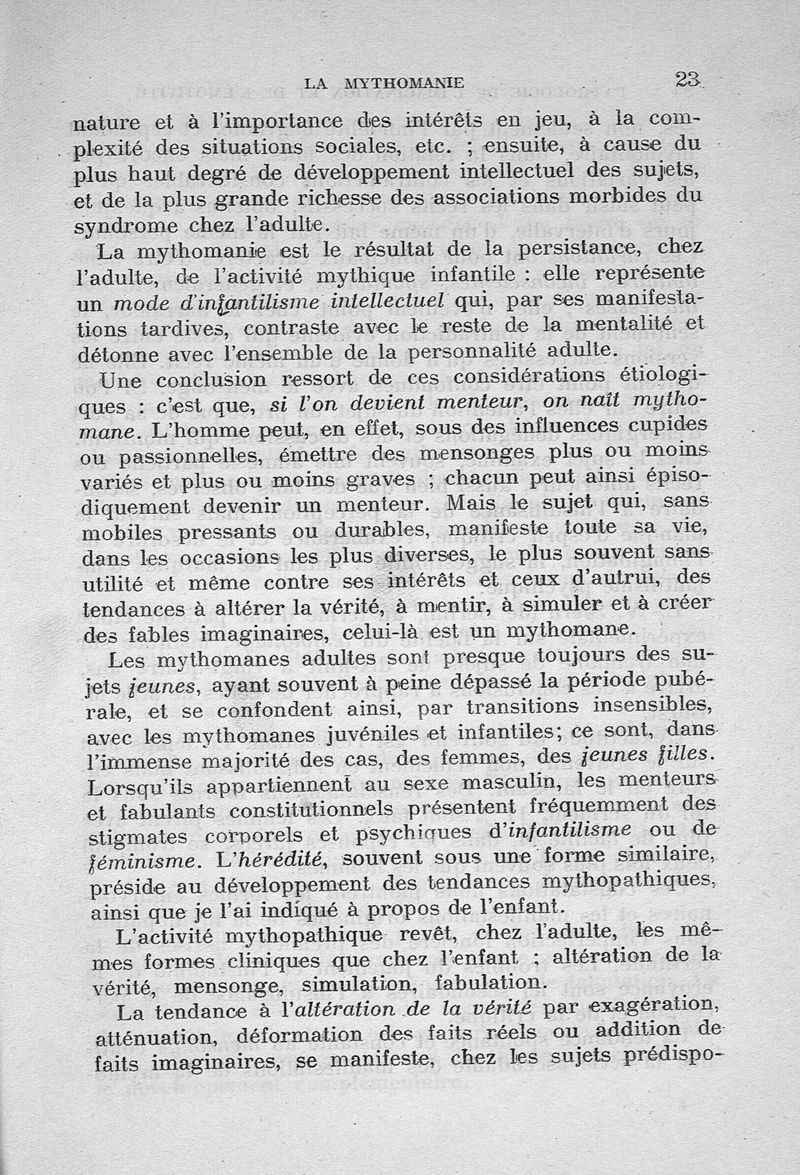 Pathologie de l'imagination et de l'émotivité
