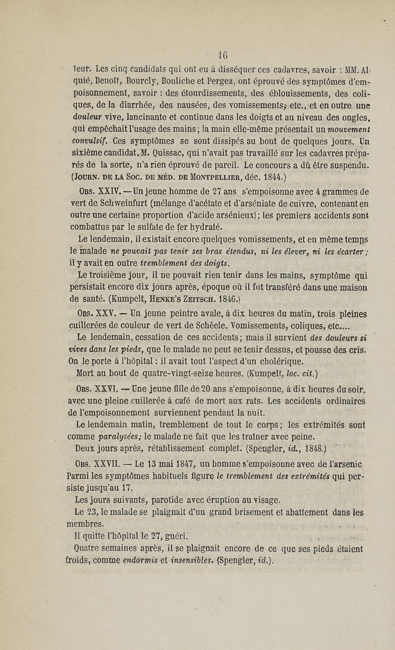 Etudes sur la paralysie arsenicale