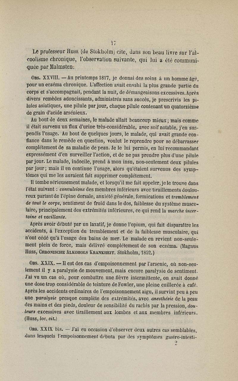 Etudes sur la paralysie arsenicale