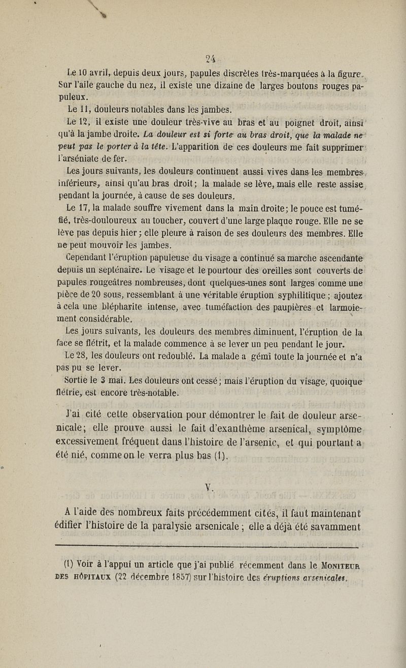 Etudes sur la paralysie arsenicale