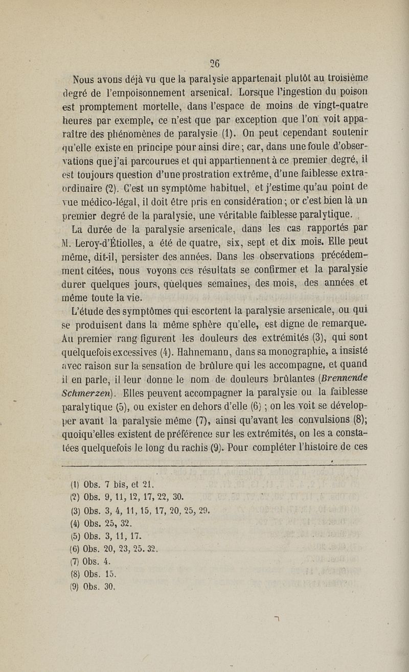 Etudes sur la paralysie arsenicale
