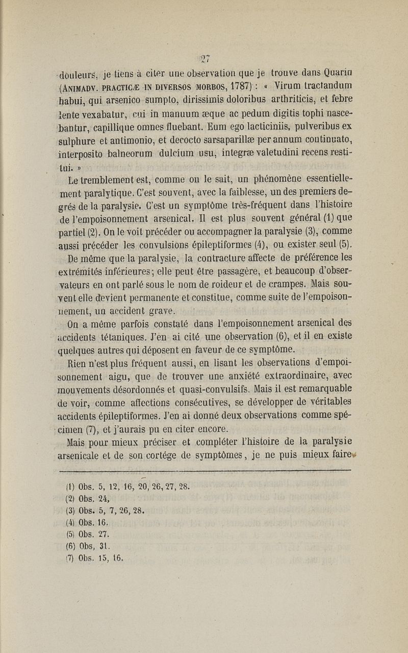 Etudes sur la paralysie arsenicale