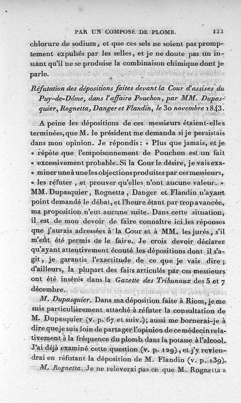 Affaire d'empoisonnement par un composé de plomb, porté devant la cour d'assises de la Haute-Loire, le 22 aout 1843, puis devant la cour d'assises du Puy-De-Dôme, le 29 novembre 1843, par M. Orfila