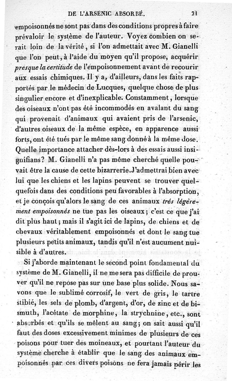 Mémoire sur quelques moyens proposés dans ces derniers temps pour découvrir l'arsenic dans les organes où il a été porté par la voie de l'absorption