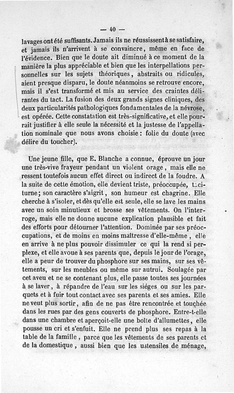 La folie du doute (avec délire du toucher)