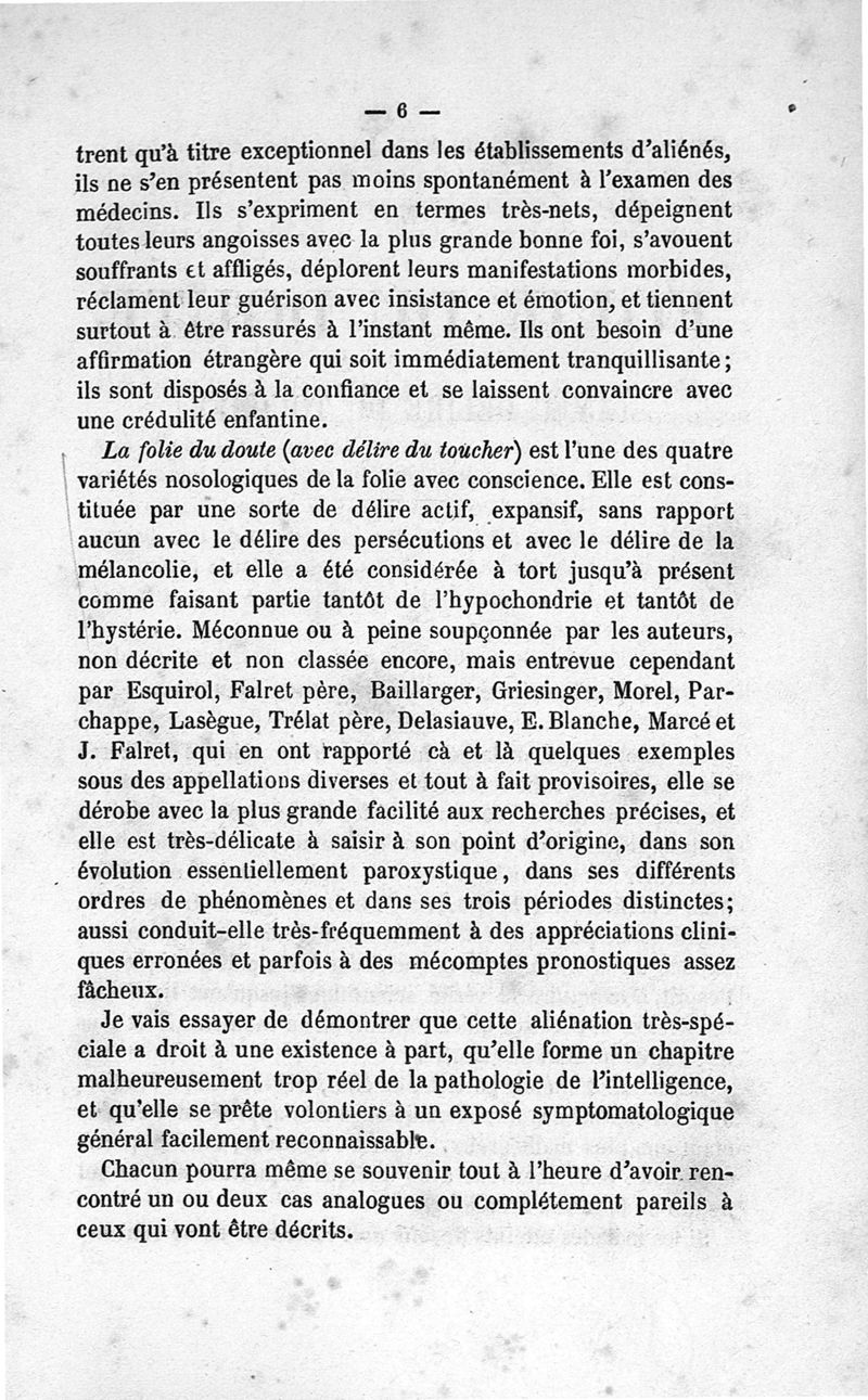 La folie du doute (avec délire du toucher)