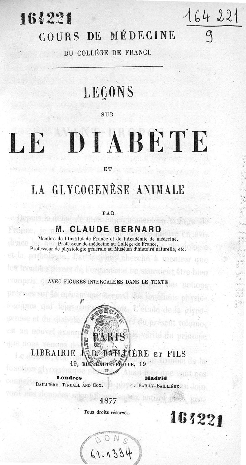Leçons sur le diabète et la glycogénèse animale