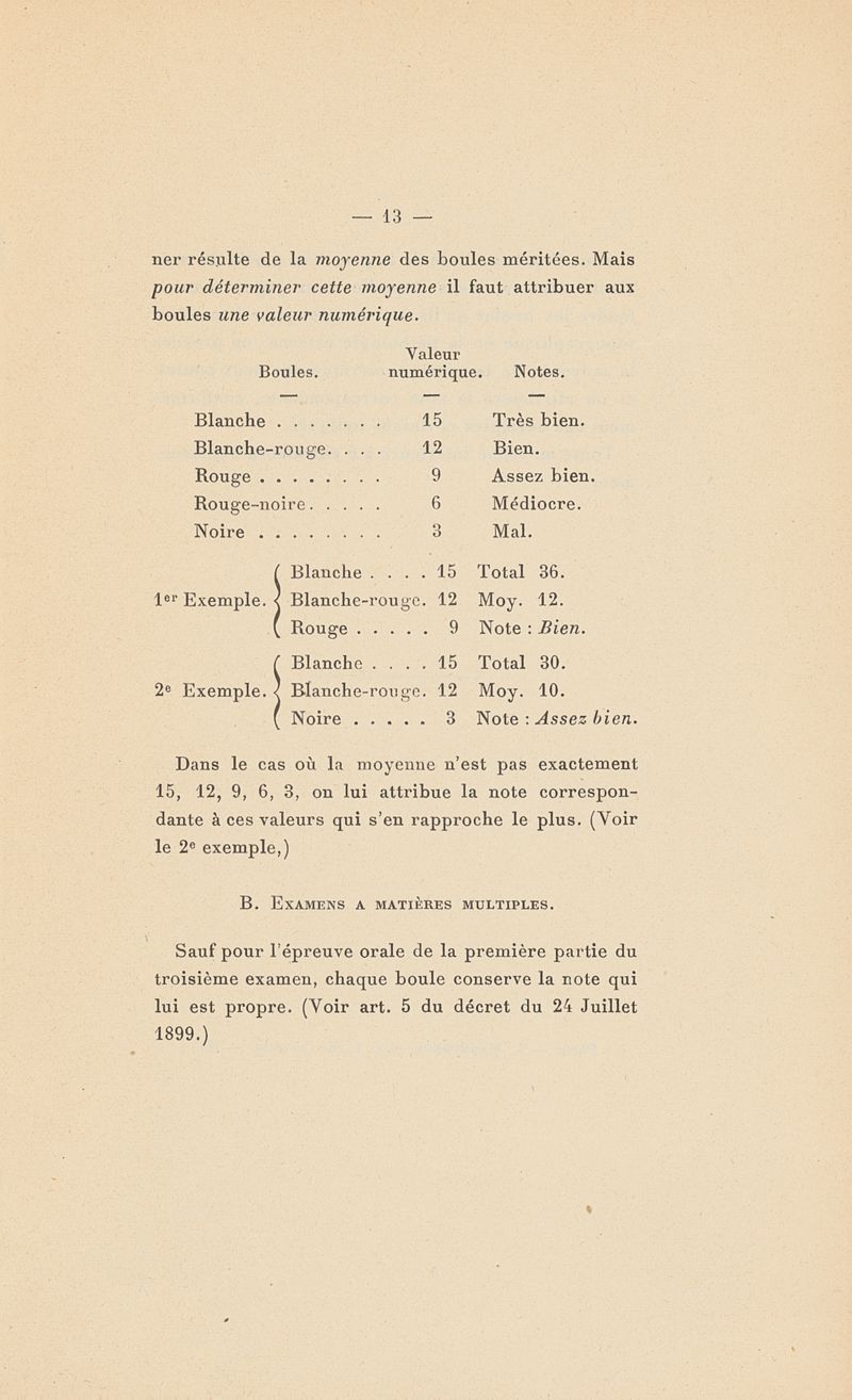 Examens probatoires : Matière des examens - Ajournements - Notation des épreuves