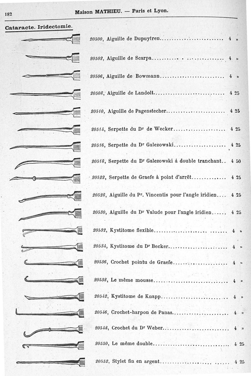 Fabrique d'instruments de chirurgie, orthopédie, prothèse, physiologie, anthropologie, coutellerie fine. Maison Mathieu.