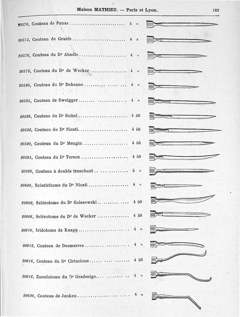 Fabrique d'instruments de chirurgie, orthopédie, prothèse, physiologie, anthropologie, coutellerie fine. Maison Mathieu.