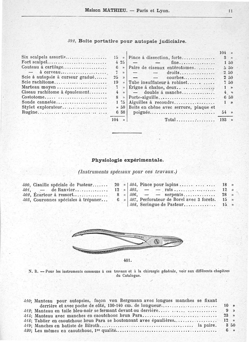 Fabrique d'instruments de chirurgie, orthopédie, prothèse, physiologie, anthropologie, coutellerie fine. Maison Mathieu.