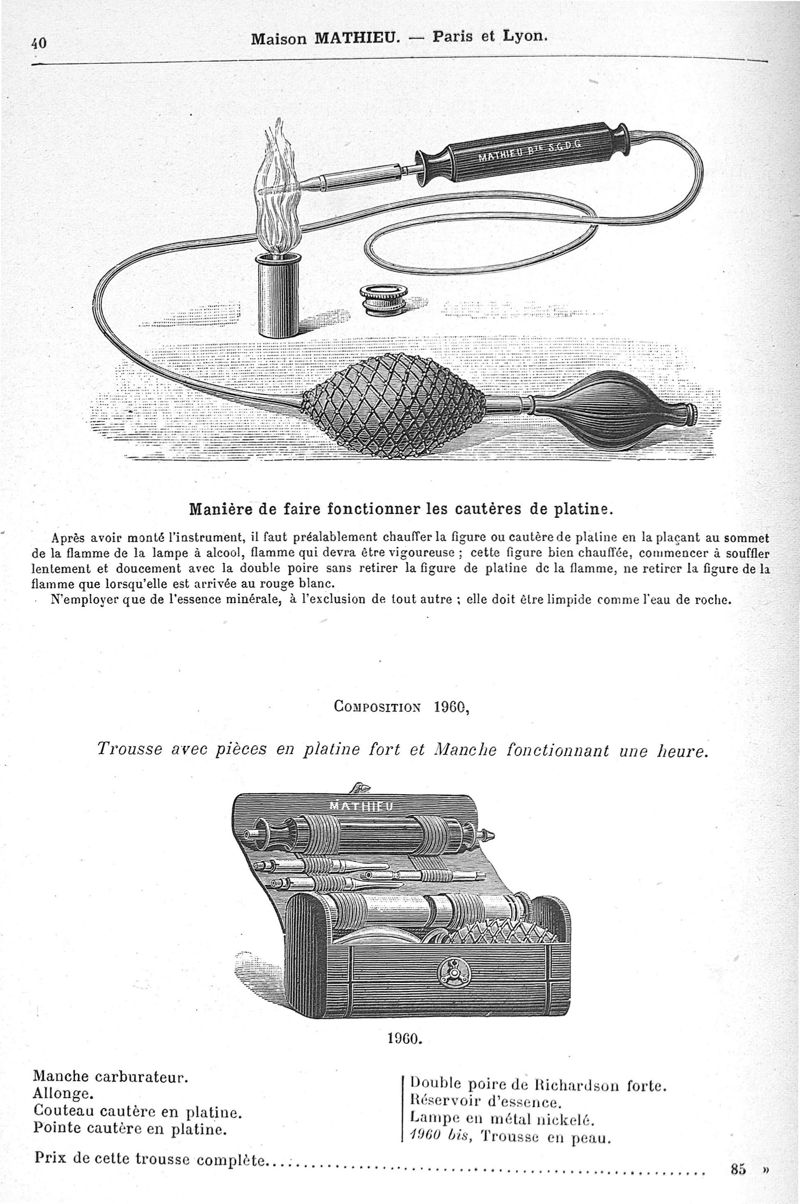 Fabrique d'instruments de chirurgie, orthopédie, prothèse, physiologie, anthropologie, coutellerie fine. Maison Mathieu.