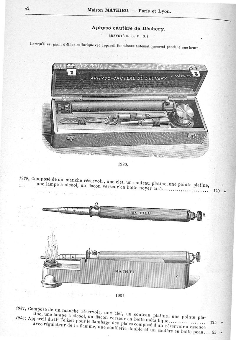 Fabrique d'instruments de chirurgie, orthopédie, prothèse, physiologie, anthropologie, coutellerie fine. Maison Mathieu.