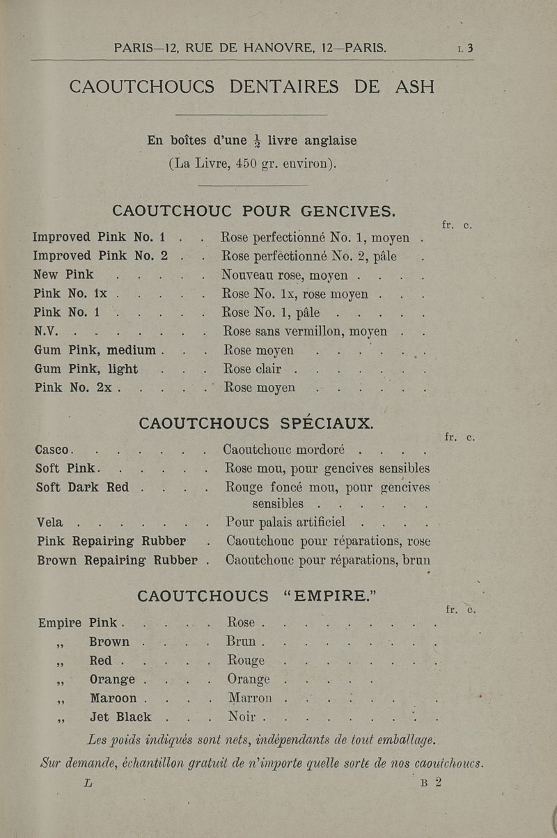 Catalogue dentaire -- Claudius Ash & Sons & Co