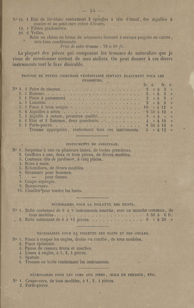 Exposition nationale de l'industrie de 1844 [...] Instruments et appareils hygiéniques, seringues, pompes, siphons et irrigateurs, sondes et bougies, pessaires, ceintures hypogastriques et ventrières, bas lacés, ceintures, bas et genouillères en tissu de caoutchouc vulcanisés, bandages herniaires de toutes sortes, bandages à fractures, goutières, cerceaux, appareils à pied-bot, ceintures et corsets orthopédiques, bras et jambes artificielles et tous appareils à prothèse, coutellerie de poche, coutellerie de table et de cuisine, nécessaires de toilette et de voyage, etc., etc.