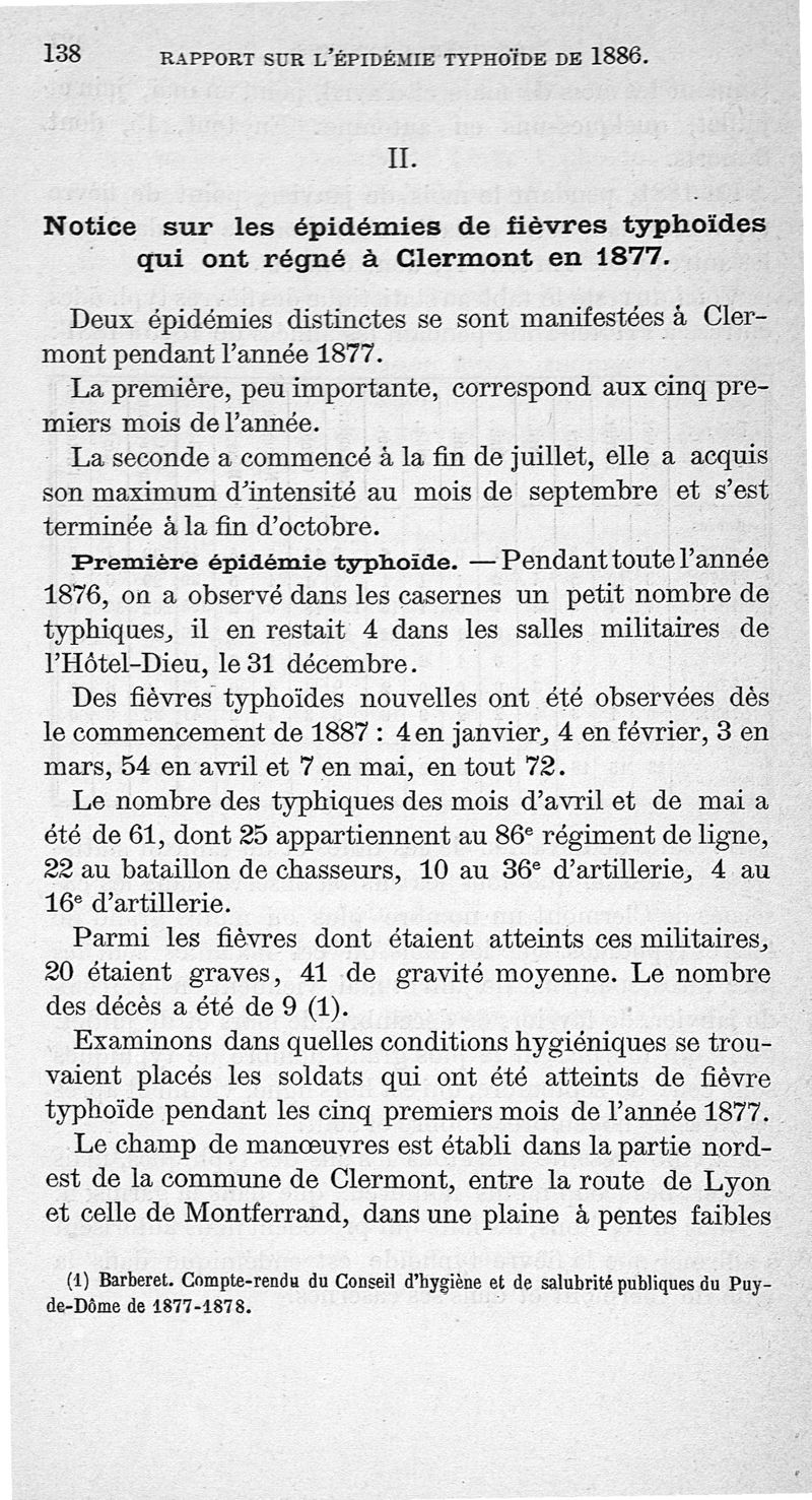 Rapport sur l'épidémie de fièvre typhoïde de Clermont-Ferrand en 1886