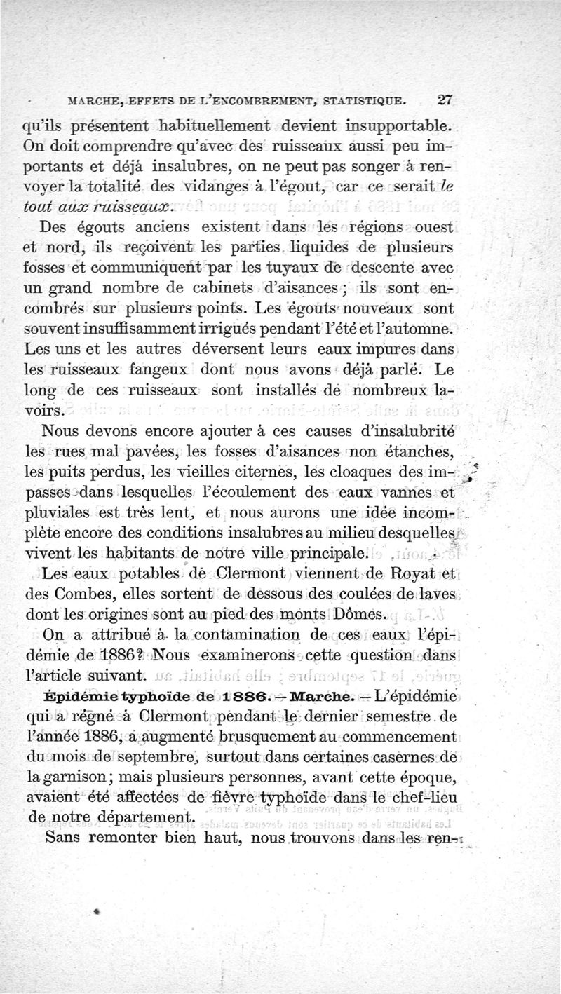 Rapport sur l'épidémie de fièvre typhoïde de Clermont-Ferrand en 1886