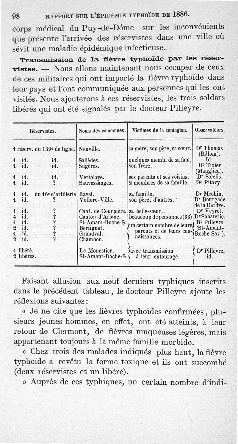 Rapport sur l'épidémie de fièvre typhoïde de Clermont-Ferrand en 1886