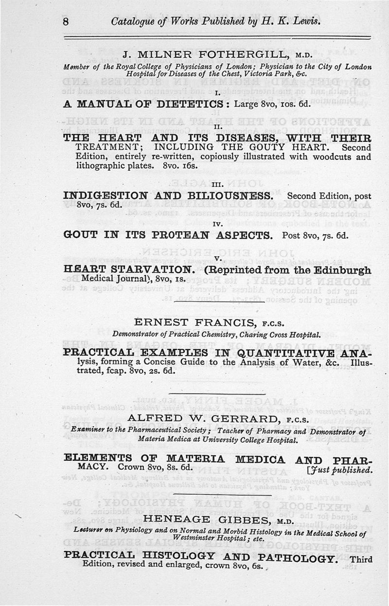 London, H.K. Lewis, 1889.