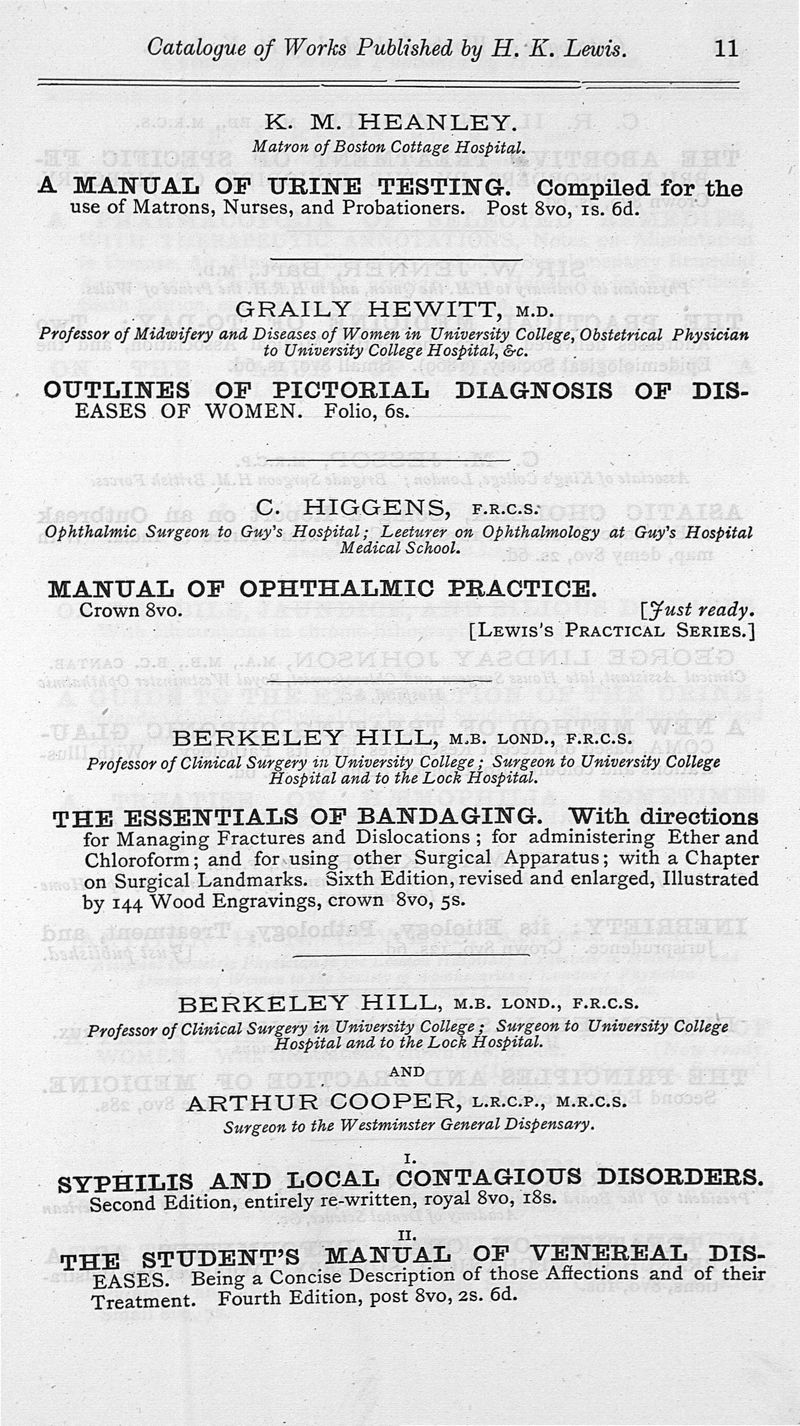 London, H.K. Lewis, 1889.